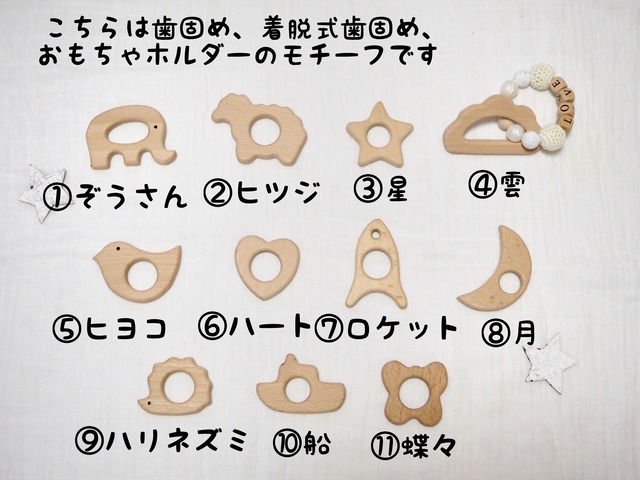 木製モチーフ付き 着脱式歯固め