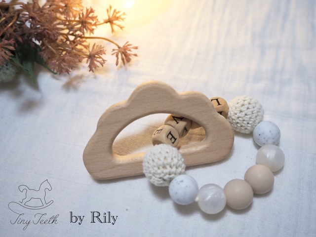 シリコンビーズの雲入り、車の歯固めです☁️ お名前、モチーフの変更可能です✨ (在庫状況によりご希望のパーツがない場合もございますのでご了承ください) プレゼントにも喜ばれます❤️ ❉ 使用しているパーツ FDA承認済、BPAフリーの食品グレードのパーツを使用しております。赤ちゃんがカミカミしてもご安心いただけます。 ❉ お手入れの仕方 ・シリコンパーツ OK:水洗い、煮沸 NG:電子レンジ、ミルトン等 シリコンパーツは水洗い可能なので、オールシリコンでお作りしたものは丸洗いOKです。 煮沸の場合10~15秒程熱湯の中に入れ菜箸等で取り出してください。熱いうちはシリコン独特のにおいがしますが、冷めるとにおいはなくなります。 ・ウッドパーツ 乾いた布やウェットティッシュなどで拭き取り、充分に乾かしてからご使用ください。 天然木から加工されたものを使用しております。形や色合いに多少の差があります。ご了承ください。 ❉ 接着剤・紐について 食品グレードの接着剤で赤ちゃんが口に入れても安心な物を使用しております。また、使用している紐は検査十分な強度があり、 ⚠️注意事項 お子様の安全のためにも必ず注意事項をお守りください。 ①ご使用の際は、必ず大人の目の届く場所でお願いいたします。お子様一人では使わないようにお願いいたします。 ◯定期的に紐が緩まっていないか、ウッドパーツやシリコンパーツの劣化による割れなどがないかご確認し、万が一紐が取れそうな場合は直ちに使用をやめてください。 《ご使用中の事故等には一切責任は負えませんのでご了承ください》
