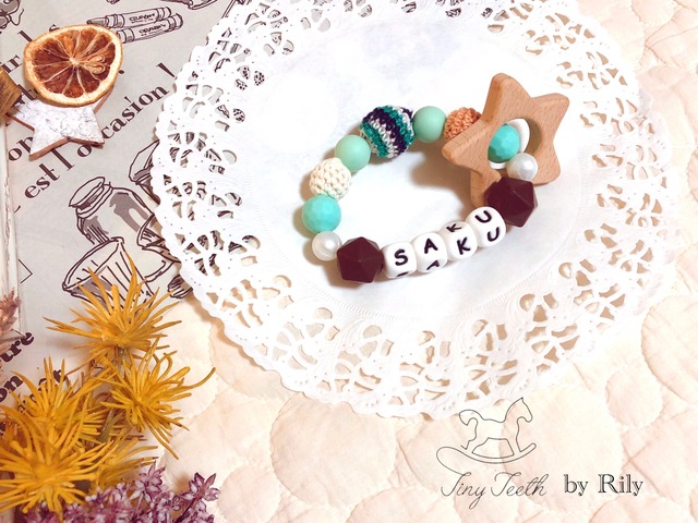 シンプルな色合いに仕上げました♡ ベージュベースで木製モチーフとの相性もバッチリです✩.*˚ 落ち着いたお色味が好みの方にはオススメです。 名入れは5文字まで無料です。 6文字目~1文字¥50 木製アルファベットとシリコンアルファベットをお選びいただけます。 写真は木製アルファベットです。 モチーフの変更・色合いの変更可能です(*^^*) お問い合わせください。 FDA承認済、BPAフリーの素材を使っていますので、赤ちゃんにも安心してカミカミいただけます。