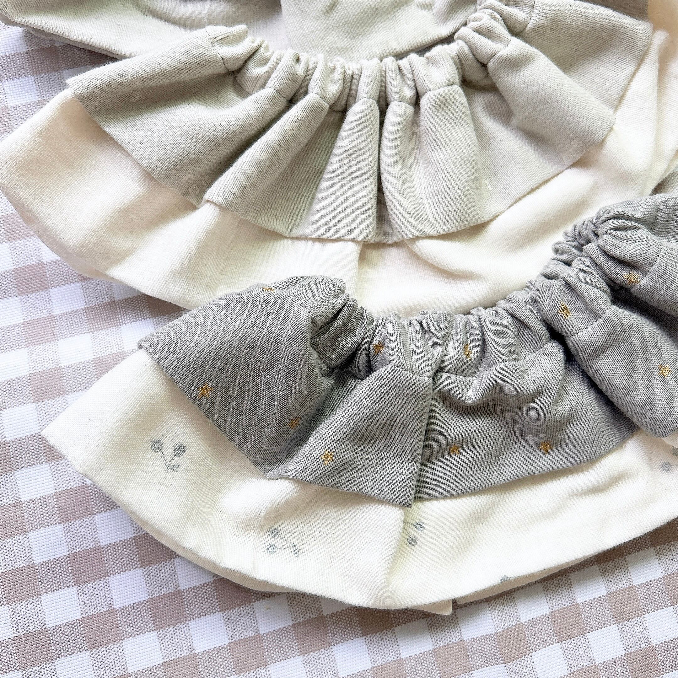ダブルフリルの可愛らしさが際立つ、赤ちゃんのためのスタイです。 ふんわりとしたフリルが2重になっているデザインで、シンプルなお洋服にも華やかさをプラスします✨ ❉首周り:約30~31cm ❉ 使用している素材 ・ダブルガーゼ ・スナップボタン ・首周りはゴム入り ❉ お手入れの仕方 ・手洗い推奨 洗濯機をお使いになる際は必ずネット使用ください。 ※乾燥機や漂白剤は使用しないでください。 ⚠️ 注意事項 赤ちゃんの安全のためにも、必ず注意事項をお守りください。 ①ご使用の際は、必ず大人の目の届く場所でお願いいたします。お子様一人では使わないようにお願いいたします。 ◯定期的にスタイの劣化状態を確認し、万が一ほつれや破れが見つかった場合は直ちに使用をやめてください。 《ご使用中の事故等には一切責任は負えませんのでご了承ください》 赤ちゃんの可愛い笑顔を引き立てるダブルフリルスタイをぜひお試しください!